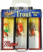 The Mepps Aglia Trout Pocket Pac features 3 #1 (1/8 oz.) Mepps spinners. It takes the guesswork out of selecting the right lure for trout. Aglias are extremely effective under a wide variety of fishing conditions. This is just one reason the Aglia, the original French spinner, has become the World's #1 Lure. Aglias run medium deep. You can control the depth during the retrieve simple by raising or lowering your rod-tip. This makes Aglias perfect for fishing both streams and lakes.